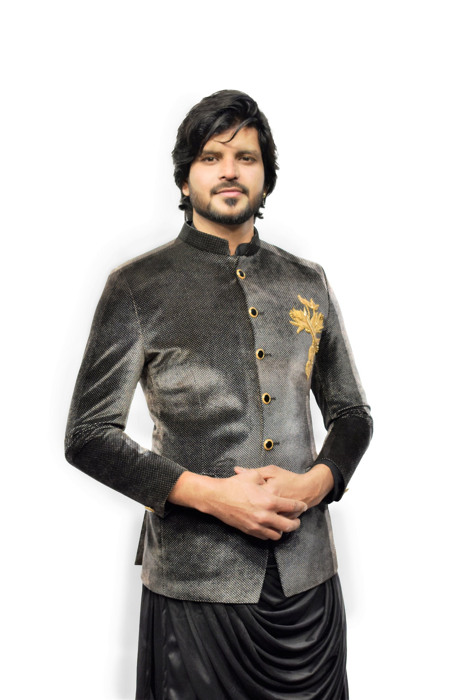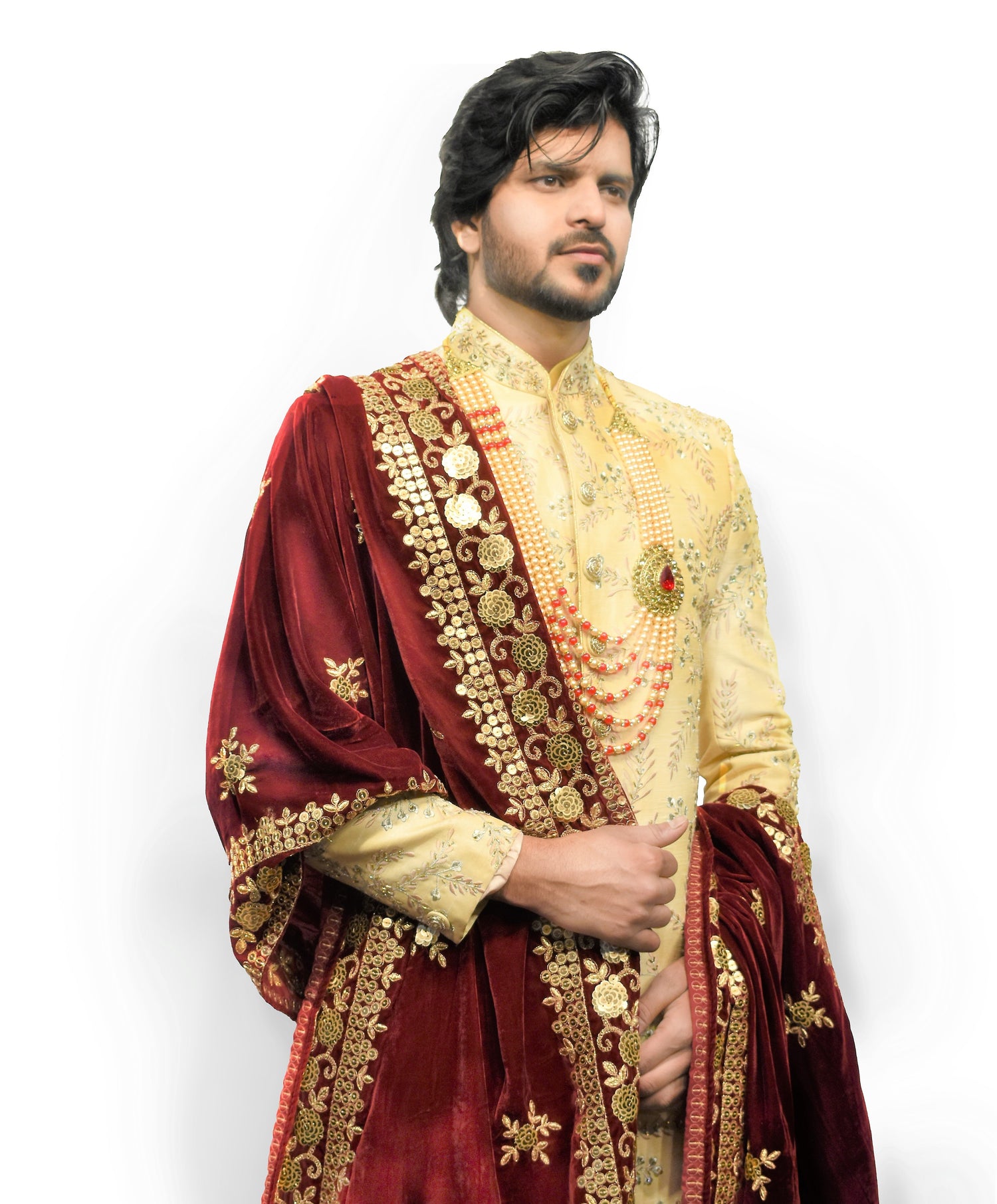 Sherwani is a long version of Achkan which evolved from Angara worn by Rajasthani's.